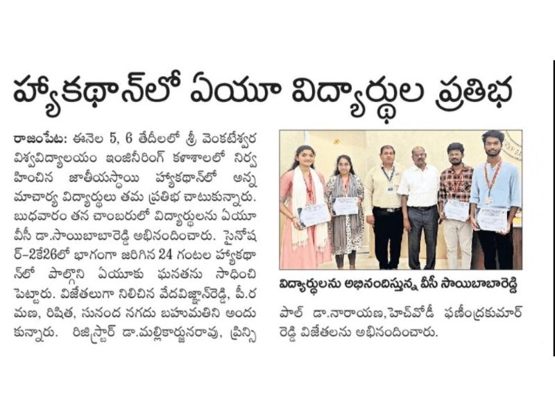 My time at Annamacharya Institute of Technology and Sciences was truly transformative. The college’s top-notch infrastructure, including excellent labs, a well-stocked library, an innovation and incubation center, and… Read more “Rachamallu Hyndhavi”