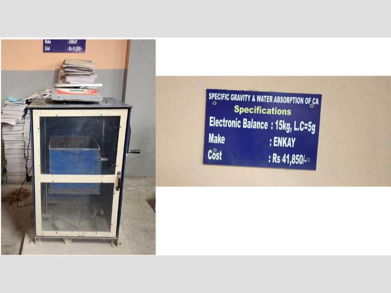 | 1 | ![]()  | Compression Testing Machine | Capacity – 2000 kN Loading mode – Power-operated, continuous (no shock) Load indicator – pace rate display Make – Enkay  | Rs. 1,42,500/- | ||||||