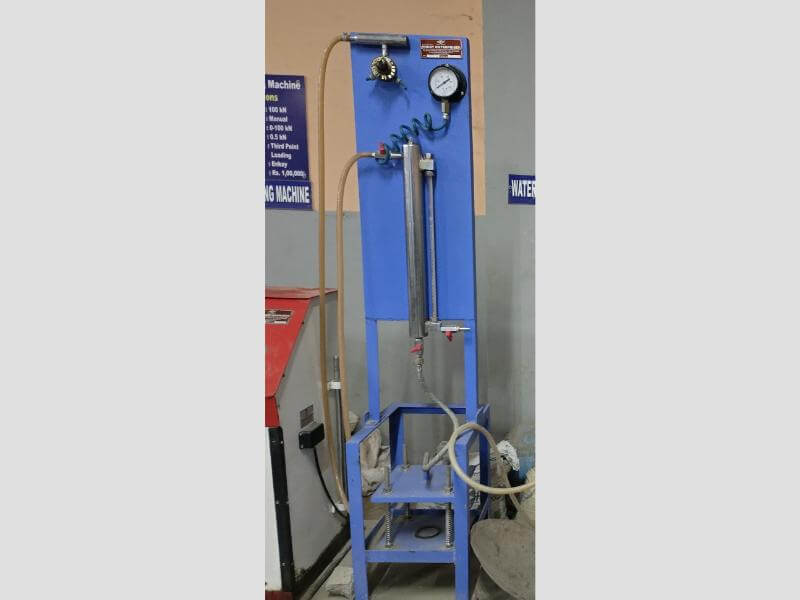 | 3 | ![]()  | Water Permeability Test Equipment | Cylindrical specimens, 150 mm diameter × 150 mm height. air compressor with pressure tank for steady flow. Graduated glass burettes (0–50 ml, least count 0.1 ml) for measuring water passage through specimens.  | Rs. 65,000/- | ||||||